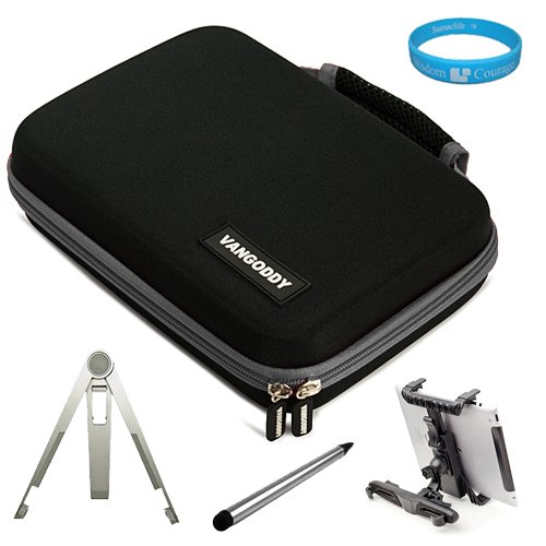 The Harlan Series Carrying Case is like no other case out there in market today. What makes this case so different from all the others would be its soft lushly Velcro Padding. The Velcro padding is a great feature that allows you to use the Velcro Tape Strips (Tape Strips INCLUDED with Case) to stick your tablet to the inside of the case to prevent it from falling out. This carrying case provides your tablet the maximum protection against unnecessary scratches and scuffs. The interior fishnet pocket allows cables, documents, cell phones or other accessories to be stored along with your device for convenience on the go. When it comes to your daily travel and protection needs the Harlan Series Carrying Case is the perfect solution. External Dimensions 7 x 9 1/2 x 2 3/4 in. Interior Dimension: 6 x 8 1/2 x 1 5/8 in. + INCLUDES!!! Dual Tip Stylus Pen. Stylus lets you type, tap, double-tap and scroll with ease and precision. Big rubber Soft Touch Tip works great on LCD Display Screens. Soft Ball Point Rubber tip works great with e-Ink (e-Reader) Display Screens + INCLUDES!!! The Car Headrest mount attaches your tablet or ereader to your car's headrest posts and allows 360 degree rotation for landscape and portrait viewing and with horizontal and lateral tilt. The custom protective holder fits your tablet for easy access to buttons and ports. + INCLUDES!!! Universal Tablet Stand-The metal stand designed for those who want to work on their tablet or eReader. Designed with a fold-away secondary leg, Stand instantly transforms from an easel to a pint-size work station, angled perfectly for typing on the device onscreen keyboard + INCLUDES!!! SumacLife TM Wisdom Courage Wristband (Tablet NOT INCLUDED)