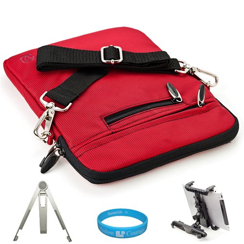 Safely carry your HP Touchpad with our New Hydei Edition Nylon Carrying Case. The Hydei Nylon Case protects and prevents unnecessary bumps, dents, and scratches from accumulating on your device. The Durable and lightweight nylon material keeps the slim shape of your device while providing shock maximum shock absorption. The soft lushly microfiber interior lining compliments your device with a soft smooth texture. One of the greatest features this case has to offer would be its small, medium, large, and extra large Accessory pockets. These pockets allow you to store your MP3 Player, Phone, Wallet, e-reader, and Tablet (All in 1 Case) for convenience on the on-go. When it comes to your daily travel and protection needs the Hydei Series Case is the perfect solution. + INCLUDES!!! The Car Headrest mount attaches your tablet or ereader to your car's headrest posts and allows 360 degree rotation for landscape and portrait viewing and with horizontal and lateral tilt. The custom protective holder fits your tablet for easy access to buttons and ports. + INCLUDES!!! Universal Tablet Stand-The metal stand designed for those who want to work on their tablet or eReader. Designed with a fold-away secondary leg, Stand instantly transforms from an easel to a pint-size work station, angled perfectly for typing on the device onscreen keyboard + INCLUDES!!! SumacLife TM Wisdom Courage Wristband (Tablet NOT INCLUDED)