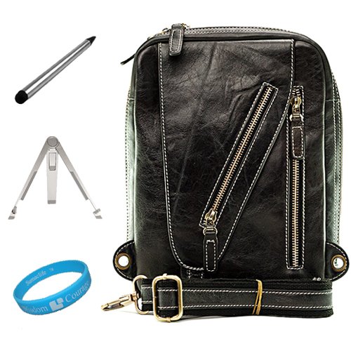 The VG Slinger Series Leather Bag is like no other bag in the market today. What makes this bag stand out so beautifully is its stylish Espresso Brown Leather Exterior. This all occasion Leather Bag provides your device the maximum protection against unnecessary scratches and scuffs. The interior and exterior pockets allow documents, MP3 Players, cell phones or other accessories to be stored along with your device for convenience on the go. When it comes to your daily travel and protection needs the VG Slinger Series Leather Bag is the perfect solution. + INCLUDES!!! Dual Tip Stylus Pen. Stylus lets you type, tap, double-tap and scroll with ease and precision. Big rubber Soft Touch Tip works great on LCD Display Screens. Soft Ball Point Rubber tip works great with e-Ink (e-Reader) Display Screens + INCLUDES!!! Universal Tablet Stand-The metal stand designed for those who want to work on their tablet or eReader. Designed with a fold-away secondary leg, Stand instantly transforms from an easel to a pint-size work station, angled perfectly for typing on the device onscreen keyboard. + INCLUDES!!! SumacLife TM Wisdom Courage Wristband (Tablet NOT INCLUDED)