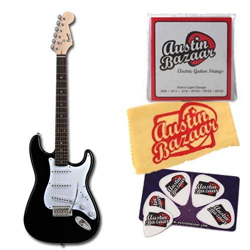 Bundle includes Squier by Fender Bullet Strat with Tremolo, Strings, Pick Card, and Polishing Cloth.