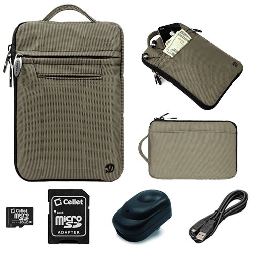 Safely carry your device with our New Small Compact Hydei Edition Nylon Carrying Case. The Hydei Edition Nylon Case protects and prevents unnecessary bumps, dents, and scratches from accumulating on your device. Its durable-lightweight nylon exterior and soft microfiber interior provides your device with maximum shock absorption. The soft lushly microfiber interior lining compliments the mold of your device with a soft-smooth texture. This case also features a many accessory pockets to allow your data cables, documents, cell phones, headphones or other accessories to be stored along side with your device for convenience on the go. (e-Reader or Tablet NOT INCLUDED) + INCLUDES!!! Black USB Home Charger. This USB-Home Travel Charger Adapter allows charging at home, in the office or when traveling via USB cable connection. + INCLUDES!!! Black Micro USB Sync Data Cable Cord + INCLUDES!!! 16GB capacity microSD memory card with SD adapters. This SD Memory Card allows you to expand the memory of your device. This micro SD Card and full-size SD adapter is a simple and practical, crossplatform storage solution that is useful in multiple devices. The adapters transform the microSD card into either a full-size SD card, making it extremely versatile. The combination of a microSD card and multiple adapters means users can pack light and do more with a single card, interchanging it with many devices. Compatible with all devices with a microSD, or SD memory card slot.
