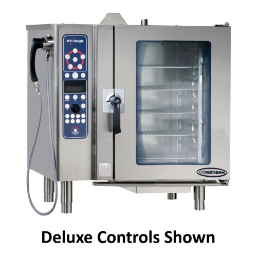 Alto-shaam countertop pressure less convection gas combioven w/ standard controls the alto-shaam 10-10esg/std series combitherm comb oven includes a quick-connect single-point internal product temperature probe in the oven interior. this counter-top model 10-10esg/std flash-steam, convection, and a combination of steam and convection heat. standard features to include patented automatic steam venting; gold-n-brown browning function and a self-adjusting, flush-mounted rotary door handle. oven is to be constructed of 18 gauge stainless steel, include an attached spray hose with backflow preventer, cool-down function, automatic cleaning function, and four (4) adjustable legs. each oven is to accommodate up to 10 half-size sheet pans or 10 full-size hotel pans, include standard right-hand door hinge, ten (10) non-tilt support rails (13" (330mm) horizontal width and 2-5/8" (65mm) vertical spacing between rails), and five (5) stainless steel shelves. standard features: alto-shaam stacking options available to maximize space boiler-free steam generation eliminates the need for boiler maintenance patented combismoke option uses real wood chips to hot-or-cold-smoke any food item graphic controls - overcomes language barriers six levels of gold-n-brown excellent memory - access up to 250 of your recipes multi-shelf timers - track cooking time of seven different food items in the same oven ecosmart design uses less electricity and water than competitive models reduced energy setting further minimizes electricity use expandable system to meet your specific requirements cooks with variable steam, convection heat, or a combination of both will roast, steam, back, or oven-fry intuitive combitouch control is fully operable from the touch screen standard control - quick-connect single-point internal product temperature prove in the oven interior gas requirements - 68,000 btu / hr hook-up - 3/4" npt height: 46-3/8" width: 42-1/16" depth: 37" interior dimensions: 27-3/8" x 17-3/8" x 2
