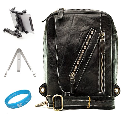 The VG Slinger Series Leather Bag is like no other bag in the market today. What makes this bag stand out so beautifully is its stylish Espresso Brown Leather Exterior. This all occasion Leather Bag provides your device the maximum protection against unnecessary scratches and scuffs. The interior and exterior pockets allow documents, MP3 Players, cell phones or other accessories to be stored along with your device for convenience on the go. When it comes to your daily travel and protection needs the VG Slinger Series Leather Bag is the perfect solution. + INCLUDES!!! The Car Headrest mount attaches your tablet or ereader to your car's headrest posts and allows 360 degree rotation for landscape and portrait viewing and with horizontal and lateral tilt. The custom protective holder fits your tablet for easy access to buttons and ports. + INCLUDES!!! Universal Tablet Stand-The metal stand designed for those who want to work on their tablet or eReader. Designed with a fold-away secondary leg, Stand instantly transforms from an easel to a pint-size work station, angled perfectly for typing on the device onscreen keyboard + INCLUDES!!! SumacLife TM Wisdom Courage Wristband (Tablet NOT INCLUDED)