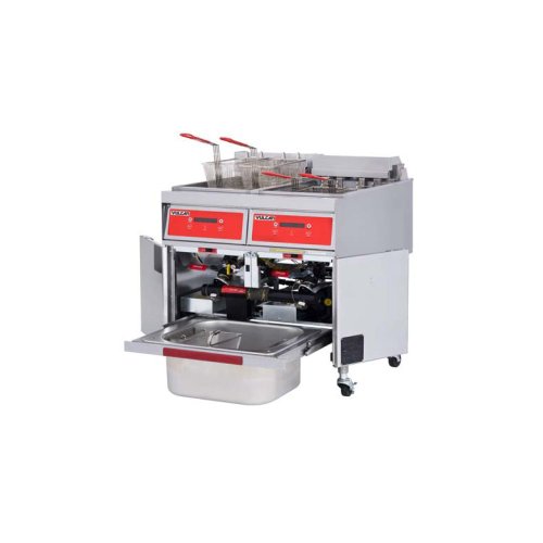 Vulcan hart s/s two fryers with kleenscreen this fryer comes with programmable computer controls and a stainless steel cabinet and tank. model #: 2er50cf material: stainless steel color: silver 1 touch filter controls 100 lb oil capacity volts: 208 or 480, specify when ordering tank size: 14-1/8" x 15-1/2" two tanks kleenscreen plus filtration system height: 36-1/4" width: 31" depth: 34-3/8" weight: 530 lbs 510477